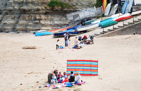 Two minutes walk, great for picnics, rock pooling, fun with dogs and catching (and putting back) a few crabs. We like to swim just the other side of the south breakwater at high tide where you can use the steps to get in and out.